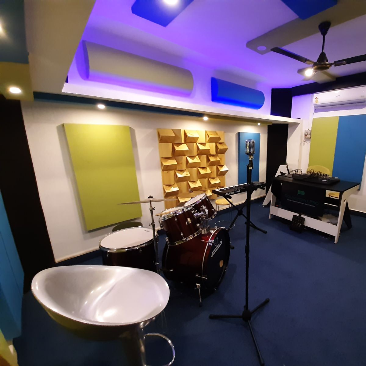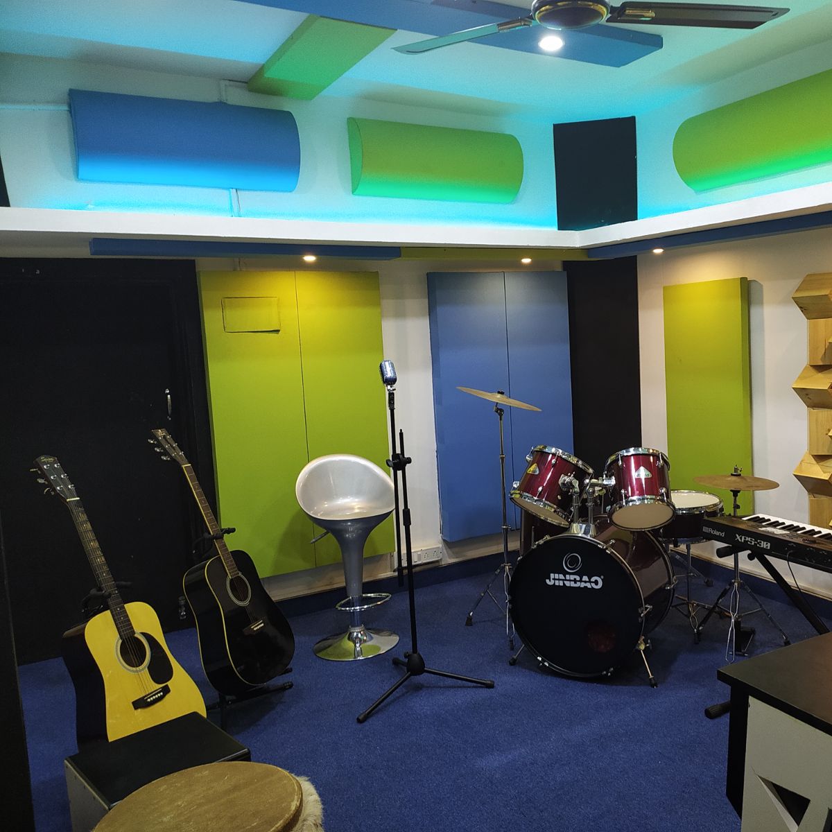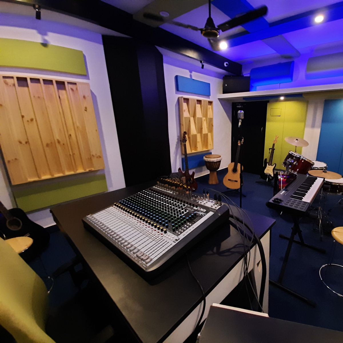 Our institute space is filled with all the necessary facilities that is needed for the students to experience and learn their passionate course of study. Be it a music production studio or a recording space or programing room or a jamming for music rehearsals, you name it we have it. Students are allowed to use the institute infrastructure without any restrictions. The institute provides every student with a separate apple mac system, a soundcard, a headphone and a MIDI keyboards for practice in the institute premises itself. All systems are loaded with professional DAW software’s, VSTs and plugins for both Music Production and Audio Production. Our jamming space is equipped with musical instruments for students to jam as a band and to explore their creative musical skills either for composing their own tune or for making any cover version of songs. The institute also sponsors video production for students and showcase their talents and skills in social media platforms (Check out our YouTube page). We also have a Foley recording studio installed with different types of flooring and foley equipment’s for recording sound effects for movies.