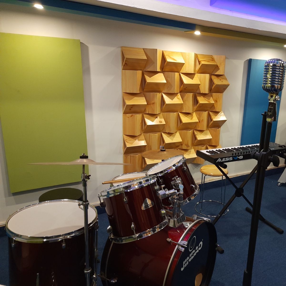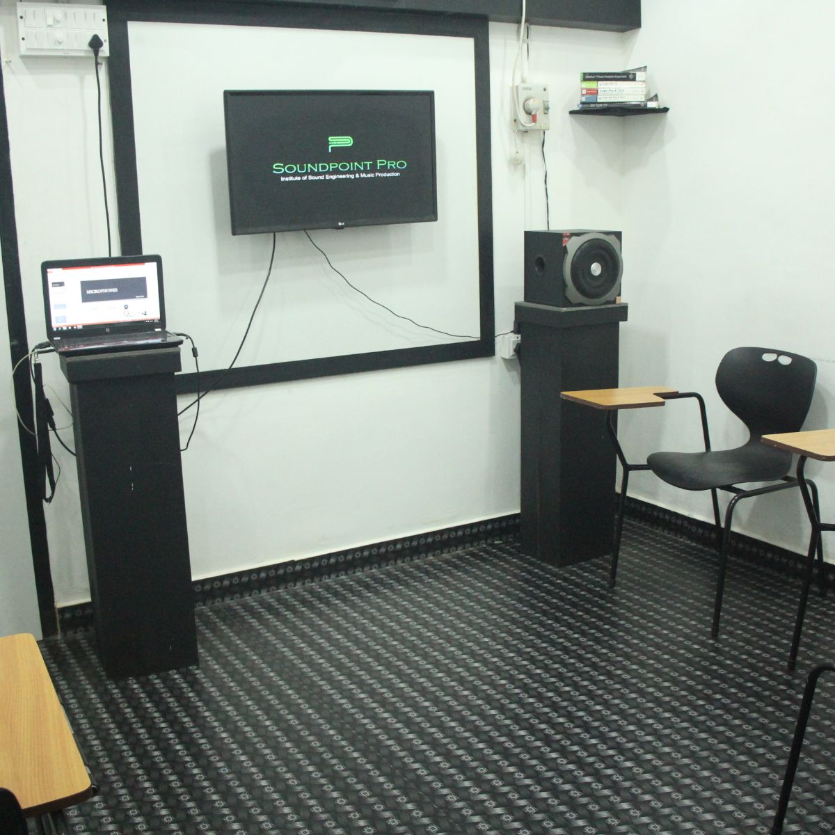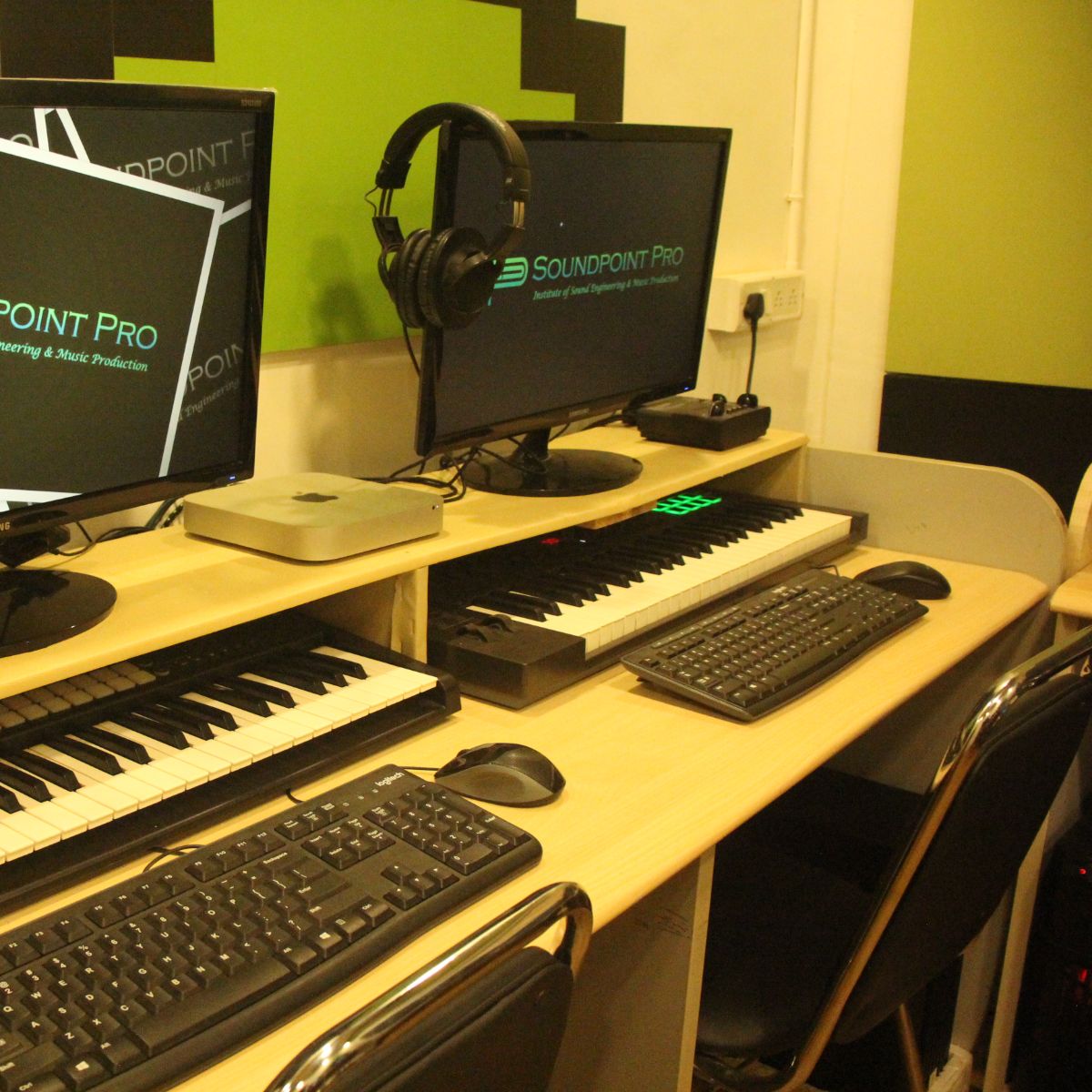 Our institute space is filled with all the necessary facilities that is needed for the students to experience and learn their passionate course of study. Be it a music production studio or a recording space or programing room or a jamming for music rehearsals, you name it we have it. Students are allowed to use the institute infrastructure without any restrictions. The institute provides every student with a separate apple mac system, a soundcard, a headphone and a MIDI keyboards for practice in the institute premises itself. All systems are loaded with professional DAW software’s, VSTs and plugins for both Music Production and Audio Production. Our jamming space is equipped with musical instruments for students to jam as a band and to explore their creative musical skills either for composing their own tune or for making any cover version of songs. The institute also sponsors video production for students and showcase their talents and skills in social media platforms (Check out our YouTube page). We also have a Foley recording studio installed with different types of flooring and foley equipment’s for recording sound effects for movies.